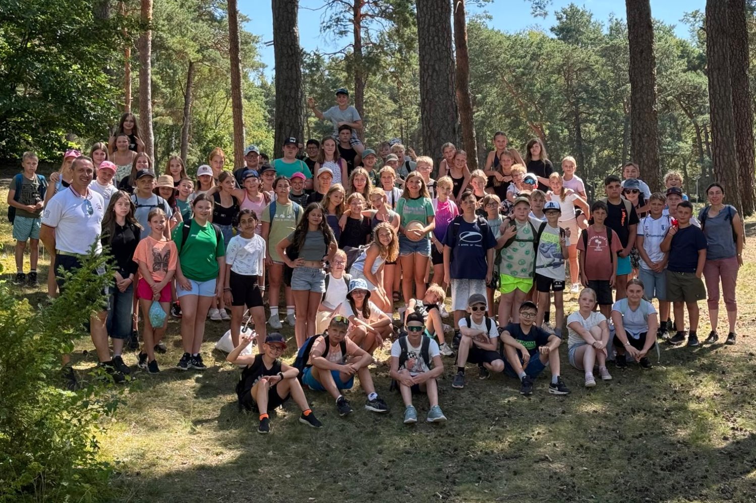 Allein schon die handyfreie Busfahrt gestaltete sich lebhafter als sonstige Fahrten, bei denen auf kleine Bildschirme gestarrt und kein Wort miteinander gewechselt wird. Es wurde rhythmisch geklatscht, gesungen und sicherlich hier und da etwas Quatsch gemacht. Im KIEZ angekommen, ging es nach einem Mittagessen, das einen schulessenerprobten Gaumen voraussetzte, zur ersten Wanderung. Dabei wurde die erste Hälfte des Sees teils durch den Wald und teils über Wiesen und Felder umrundet. Da die Schüler bereits an den Projekttagen des vergangenen Schuljahres gelernt hatten, dass Jammern nichts hilft, konzentrierten sie sich auf das heißersehnte Ziel des Fußmarsches: die Badestelle! Hier konnten sie ausgiebig plantschen und schwimmen, Frösche fangen und nach dem Schlüssel suchen, der zur Begeisterung der Rezeption bereits am ersten Tag verloren gehen sollte. Die Gestaltung des späten Abends bleibt ein Geheimnis der Zimmerbewohner, die den Interpretationsspielraum des Wortes „Nachtruhe“ nutzten, um Karten zu spielen, die letzten Beauty-Tipps auszutauschen oder ausnahmsweise auch zu schlafen.
