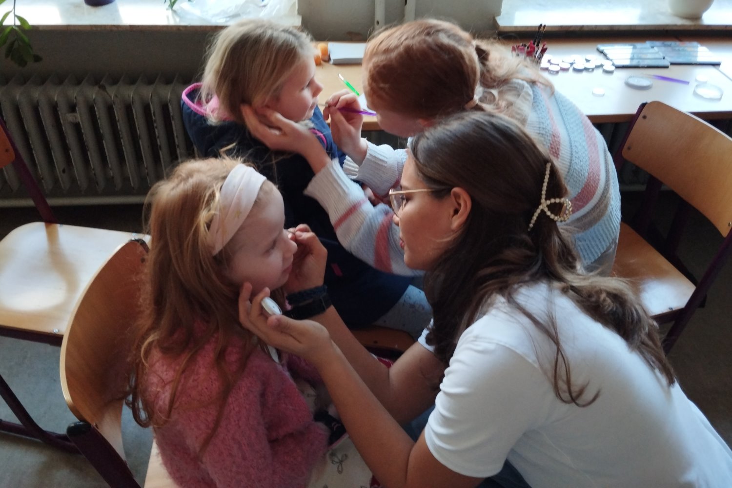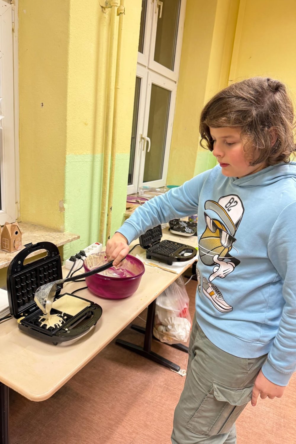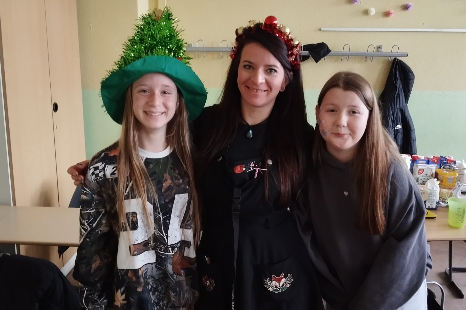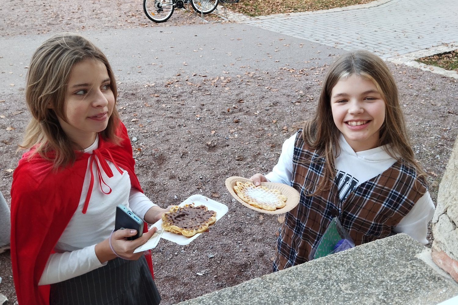 Auch der umrahmende Weihnachtsmarkt offenbarte das großartige gemeinsame Engagement. Frische Waffeln, Kinderschminken, Überraschungsboxen, Grillwurst, Pommes Frites, Kinderpunsch, Ofenkartoffeln, handgemachte Weihnachtsdekorationen, Glücksrad und Schokofrüchte, Losbox, reichlich Kuchen und Kaffee beschreiben die vielfältigen Angebote, betreut von Schülern mit ihren Lehrern.
